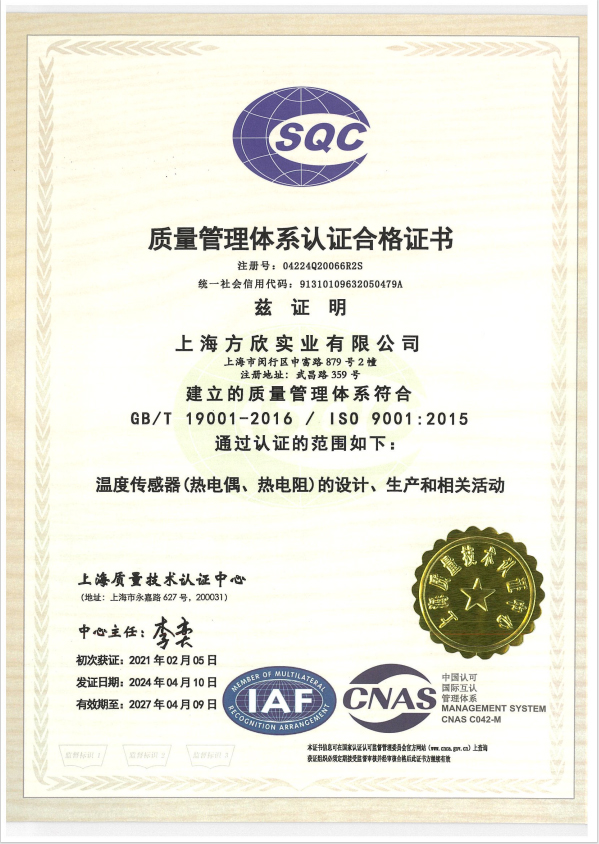 質(zhì)量管理體系證書