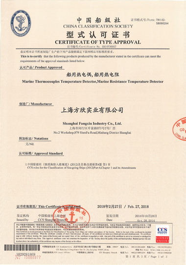 中國(guó)船級(jí)社型式認(rèn)可證書